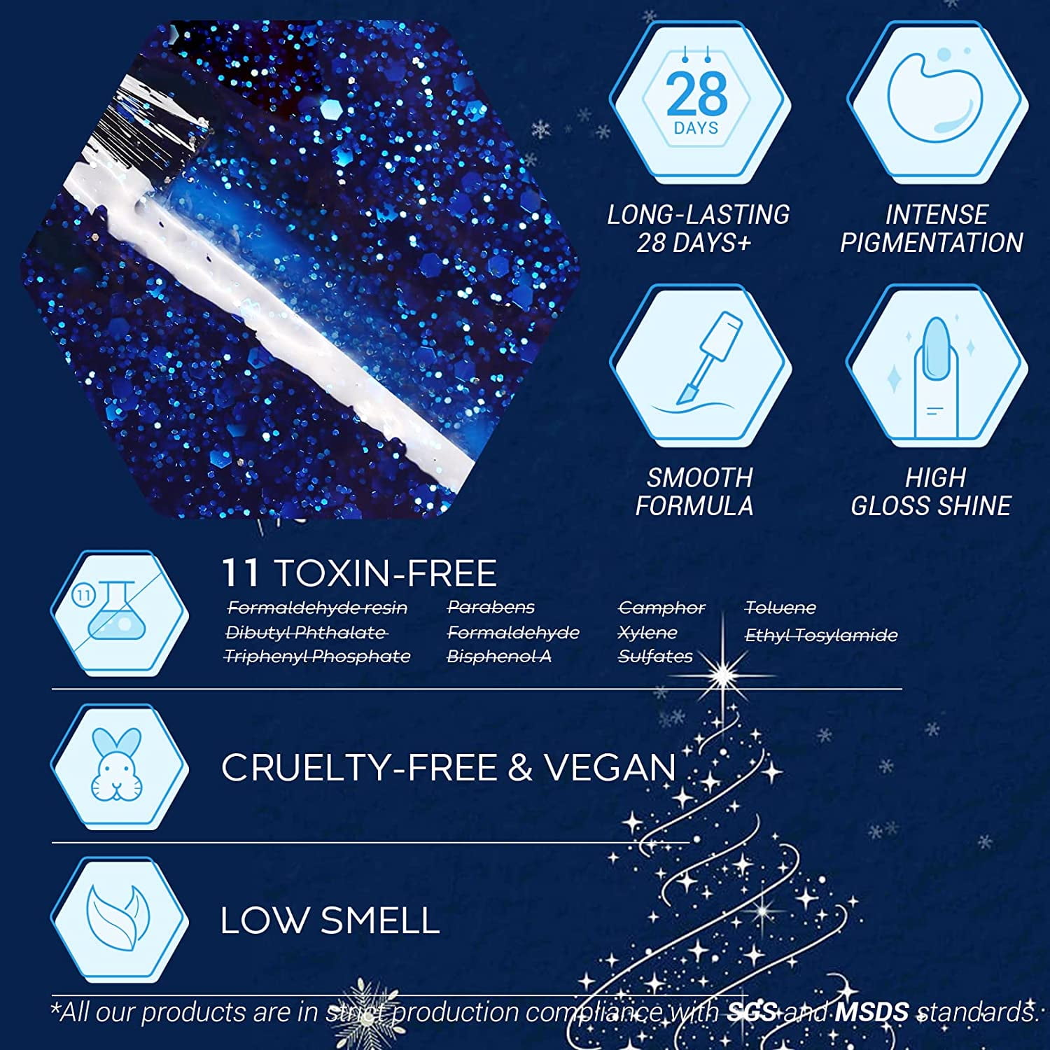 Blue Gel Nail Polish Set 6 Blue Christmas Color Changing Gel Polish Winter Dark Blue Glitter Nail Polish Gel Kit Soak Off Led Nail Art Manicure Holiday Gifts For Women Girls Diy