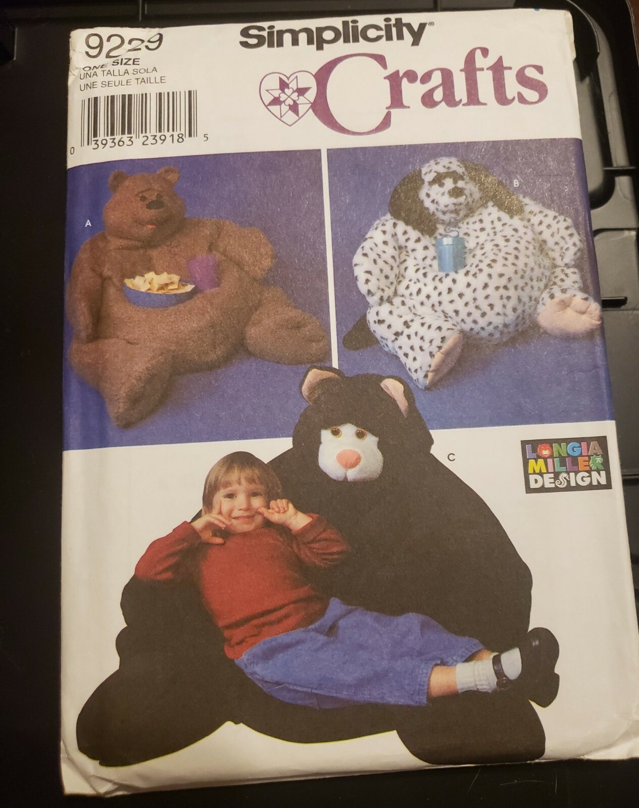 2000 Simplicity Crafts Pattern 9229 Animal Bean Bag Chairs Uncut Ebay